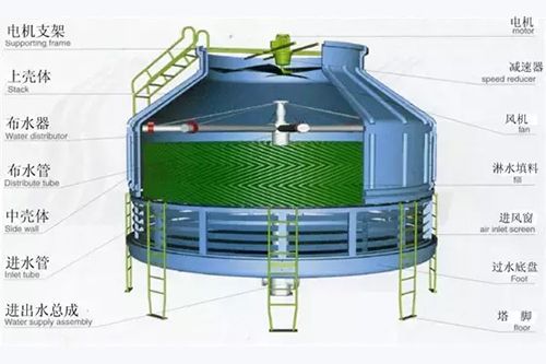 冷卻塔原理:冷卻塔是由本體、集水盤、消音毯、蜂窩式散熱片、散水系統(tǒng)、擋水板、冷卻風(fēng)扇、扶梯等組成。冷卻塔原理:是用需冷卻的水經(jīng)散水系統(tǒng)散開,蜂窩式散熱片一方面將散水管來(lái)的水進(jìn)一步散均勻,另一方面冷卻風(fēng)